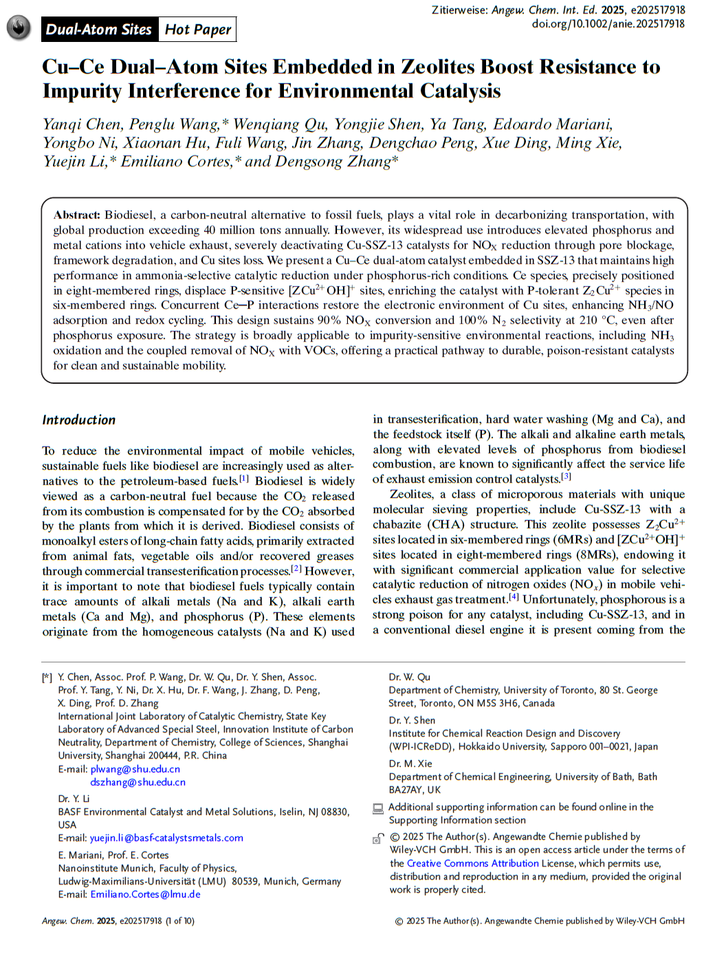 Dual-Atom Sites for Environmental Catalysis Project URLhttps://onlinelibrary.wiley.com/doi/full/10.1002/ange.202517918