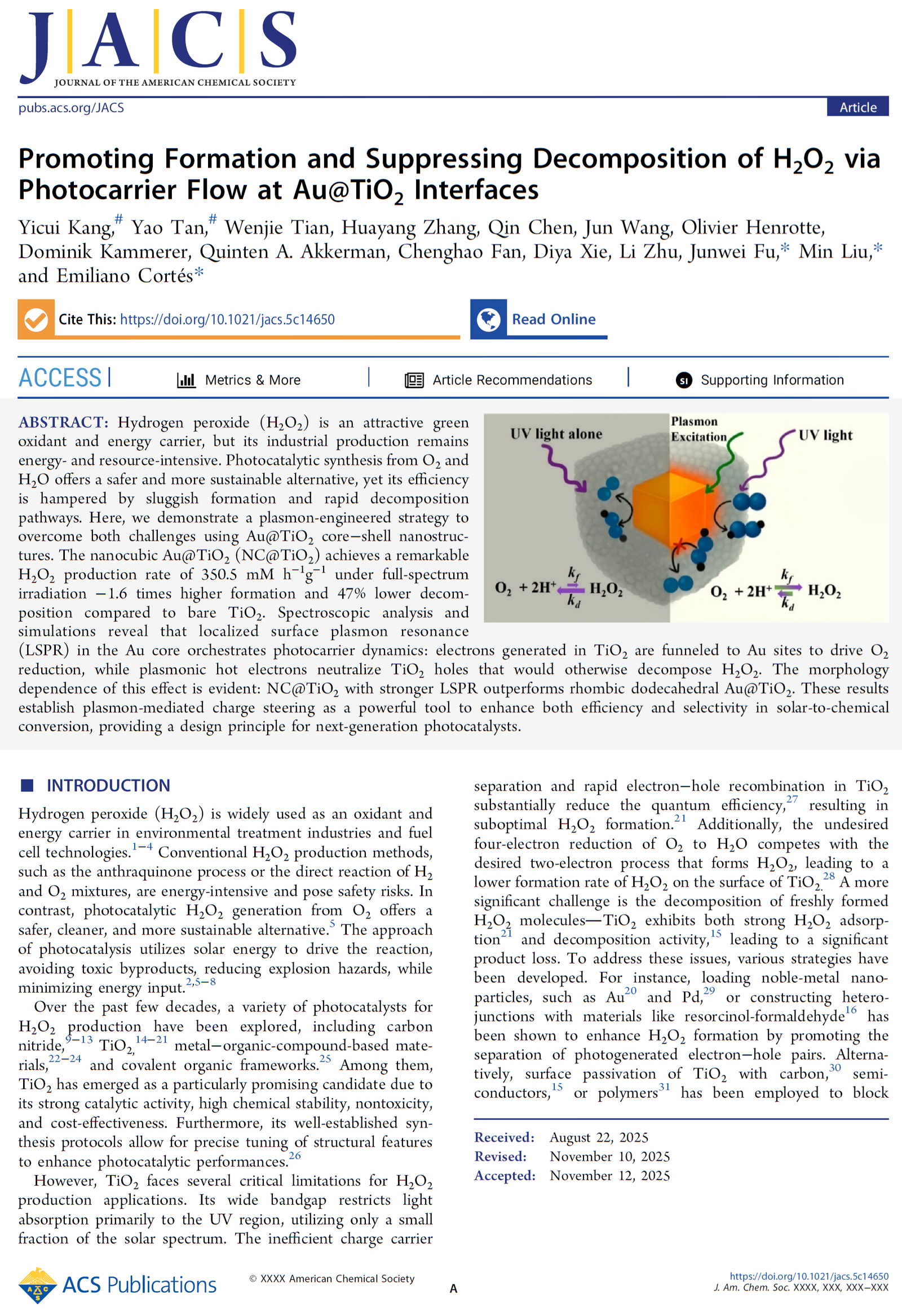 Hot carriers + Photocarriers for H2O2 production Project URLhttps://pubs.acs.org/doi/10.1021/jacs.5c14650